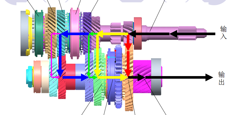 下面是个简单的二轴式变速器的功率流:米乐M6